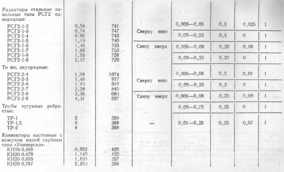 | Радиаторы чугунные секционные: МС-140-108 МС-140-98 МС-90-108 | 0,244 0,240 0,187 | 753 . 725 802 | Сверху вниз | 0,005—0,014 | 0,3 | 0,02 | 1,039 | |