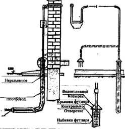 В качестве утеплителей используют негорючие или трудногорючие материалы - минеральную вату по ГОСТ 9573-82, песок перлитовый по ГОСТ 10832-83 и т.п., обеспечивающие дифундирование газа и его вывод через контрольную рубку или отверстие футляра.