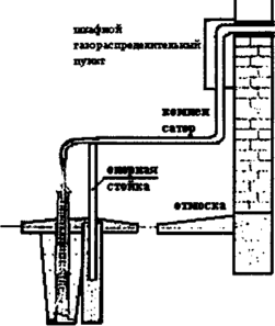 При назначении места подхода газопровода к зданию не должны также игнорироваться требования архитектурной эстетики. Настенные вводы несколько ухудшают архитектурный вид зданий, поэтому их желательно располагать на торцевых стенах (лучше всего глухих), а дальнейшую прокладку вести при помощи наружного газопровода.