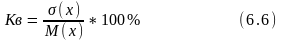5. Коефіцієнт варіації випадкової величини являє собою виражене у відсотках відношення середнього квадратичного відхилення до математичного чекання, чи середньозваженому значенню цієї величини: