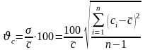 - середньоарифметичне значення концентрації ключового компоненту в пробах; сі - значення концентрації ключового компоненту в і-ої проби; п - число аналізованих (відібраних для аналізу) проб.