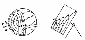 Гранули, що утворюються, підіймаються на деяку висоту разом з тарілкою, що обертається, а потім скачуються вниз по поверхні шару мілкодисперсного порошку під кутом природного укосу. Одночасно матеріал зрошується водою, що подається через розпилюючу форсунку. Для непластичних матеріалів на хімічно активних зв'язках зволоження порошку може бути замінено локальною тепловою дією (мал.10.3). Рідинну форсунку замінює стаціонарне джерело теплоти (електронагрівач або газовий пальник). Велике значення має вибір місця зволоження гранульованого порошку.