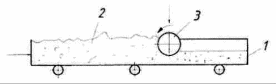 Мал.6.5. Схема роликового формування: 1 - форма; 2 - бетонна суміш, 3 - ролик.
