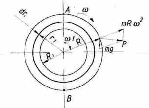 Отже, при горизонтальному тому, що розташовує осі обертання робочого органу в точці А (мал.6.4) тиск нижче, ніж в точці В. При циліндровому робочому органі і обробці плинних середовищ це примушує їх при роботі центрифуги рівномірно розподілятися по внутрішній поверхні робочого органу.