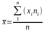 Пусть среди n событий случайная величина х1 повторяется n1 раз, величина х2 – n2 раза и т.д. Тогда среднеарифметическое значение х имеет вид:
