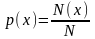 , представляющего собой отношение числа случаев n(x), при которых имело место событие к общему числу событий n: