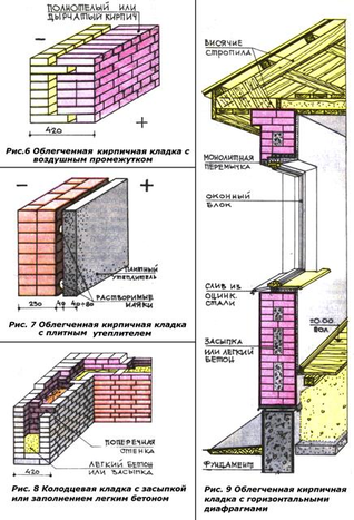 Второй — строить из обыкновенного полнотелого кирпича, применяя облегченную кладку. Какие же конструкции ее можно предложить?