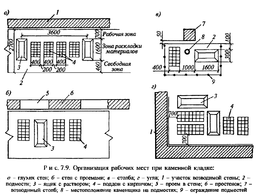 рабочая зона — шириной 0,6...0,7 м между стеной и материалами;