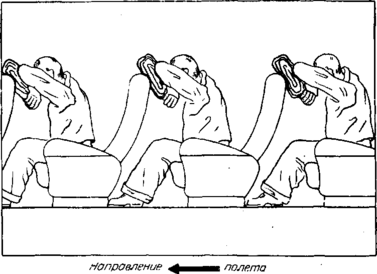 Если пассажиры занимают задние места в легком самолете, то им следует принимать позы, указанные выше.