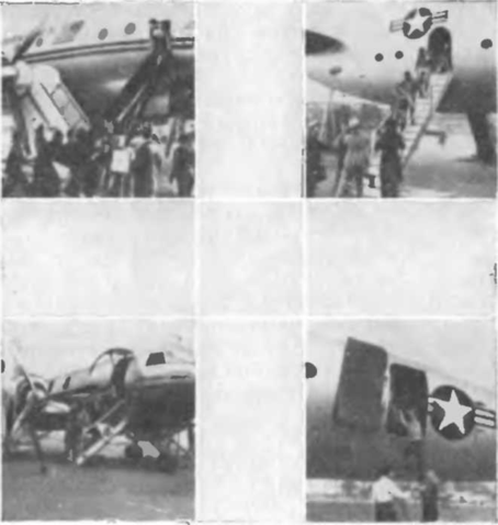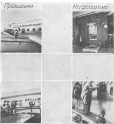 Наиболее эффективными приспособлениями для спуска пассажиров на землю с самолета являются лестницы и сходни, которые отвечают основным требованиям, а именно: 1) позволяют пассажирам в движении сохранять нормальное (вертикальное) положение и 2) позволяют выходить нескольким пассажирам одновременно. Третье требование, заключающееся в том, чтобы эти приспособления были устойчивы во время использования, будет, несомненно, выполнено в ближайшем будущем (см. рис. 16).