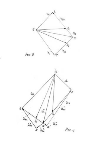 - планы скоростей и ускорений для заданного положения звеньев механизма;