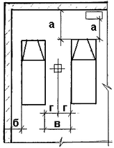 | От задней стороны автомобилей до стены или ворот при прямоугольной постановке автомобилей | а | 0,5 | 0,7 | 0,7 | |||||