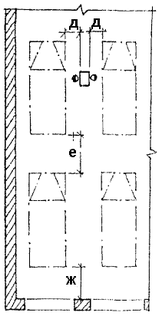 | От передней стороны автомобиля до стены или ворот при прямоугольной расстановке автомобилей | е | 0,7 | 0,7 | 0,7 | |||||