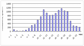 Рисунок 1 – График распределения интенсивности движения по часам суток