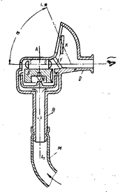 В 1886 г. французский адмирал Флерие предложил новый прибор - секстан - для измерения географической широты местоположения корабля во время шторма, основой которого являлся быстро вращающийся волчок. Сам волчок был выполнен в виде цилиндрического тела В (рис.3), подпертого остроконечной шпилькой на точке N. Во время работы прибор удерживали за рукоятку%R в вертикальном положении. С помощью ручного насоса во внутрь его через шланг М накачивали сжатый воздух, который ударял направленными струями в боковую поверхность волчка и приводил его во вращение вокруг оси ААХ. При весе волчка в 175 г удавалось сообщить ему вращение со скоростью около 3000 об/мин. Для обеспечения вращения волчка неизменно в горизонтальной плоскости его центр тяжести располагали примерно на 1 мм ниже точки опоры. Приведенный во вращение волчок даже при отклонениях рукоятки от вертикального положения продолжал оставаться в горизонтальной плоскости, обеспечивая на качающемся корабле искусственный горизонт.