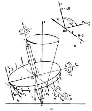 Вернемся к точке А. Сила инерции FK на плече r создает момент МГА, действующий на волчок вокруг оси х. Этот момент, порожденный Кориолисовой силой инерции, называется гироскопическим.