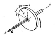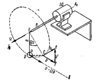 Как только вал двигателя начнет вращаться вокруг оси ААХ, шарик D также начнет перемещаться вокруг этой оси. Если вал двигателя вращается с постоянной угловой скоростью 2, то и шарик D будет двигаться с такой же по величине скоростью. Окружная скорость v = ΩR шарика D в этом случае постоянна, но все же его движение не остается равномерным и прямолинейным, так как изменяется направление его движения.