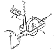 Угол поворота гироскопа b вокруг оси ВВ1 является пропорциональным величине угловой скорости вынужденного поворота прибора, так как кинетический момент и коэффициент k в каждом приборе остаются величинами постоянными. Следовательно, по величине угла с помощью данного прибора можно измерять угловую скорость. Именно поэтому он получил название гироскопического тахометра. Так как гироскоп прибора имеет только две степени свободы, вокруг осей АА1 и ВВ1 его называют еще гиротахометром с двумя степенями свободы.