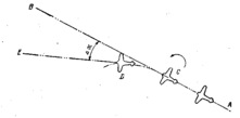 При наличии на самолете гироскопического указателя поворотов описываемый поворот будет сразу же зафиксирован прибором, стрелка которого отклонится от нулевой черты на шкале указателя. Однако летчик в момент нахождения самолета в точке С мог быть занят наблюдением показаний какого-либо другого контрольного прибора, число которых на приборной доске современного самолета достаточно велико. Может случиться так, что летчик обратит внимание на шкалу гироскопического указателя поворотов лишь только в точке D, когда самолет уже отклонится от заданного курса на некоторый угол Δα.