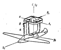 Из рассмотренного выше можно сделать заключение о том, что для выдерживания полета самолета в заданном направлении не обязательно определять величину угловой скорости его поворота вокруг оси Oczc. Важно лишь получить указание о возникновении этой скорости и ее направлении. Вот почему в авиации гироскопическим тахометром часто пользуются не для количественного измерения угловых скоростей поворота самолета, а лишь для получения качественной информации о факте ее возникновения.