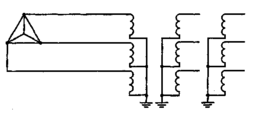 Рисунок Б.4 — Схема включения трехфазных трехобмоточных трансформаторов в трехфазных электрических сетях с изолированной нейтралью и напряжением 3 — 35 кВ