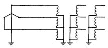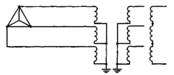 Рисунок Б.8 — Схема включения однофазных заземляемых трехобмоточных трансформаторов в трехфазных электрических сетях с изолированной нейтралью и напряжением 3 — 35 кВ