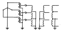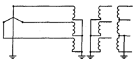 Рисунок Б.5 — Схема включения трехфазных трехобмоточных трансформаторов в трехфазных электрических сетях с изолированной нейтралью и напряжением 3 — 35 кВ