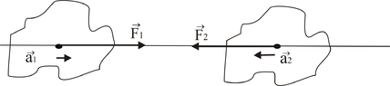 Сили, з якими діють одне на друге тіла, завжди рівні по модулю, протилежно напрямлені і діють вздовж прямої, що з’єднує центри мас цих тіл.