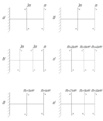 Ответ: Mz max a) 2m; б) 4m; в) 4m; д) 18кНМ; е) 45кНМ