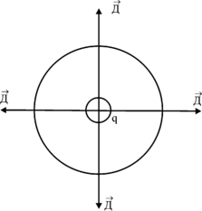 В) Поле зарядженої сферичної поверхні радіуса R і зарядом q має центральну симетрію (рис. 6).