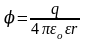 Потенціал точкового заряду має вираз:
