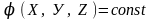 Якщо потенціал заданий як функція (X, Y, Z) то рівняння еквіпотенціальної поверхні має вигляд: