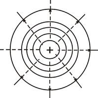 Умовились проводити ці поверхні таким чином, щоб різниця потенціалів між будь-якими двома сусідніми еквіпотенціальними поверхнями була сталою. На рис. 2 зображені еквіпотенціальні поверхні поля точкового заряду у перерізі. Радіальні силові лінії перпендикулярні еквіпотенціальним концентричним сферичним поверхням. Картина поля є наглядною.