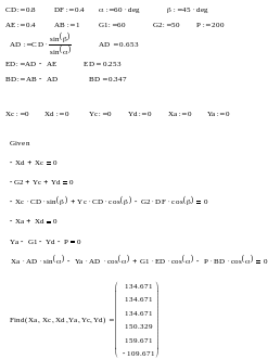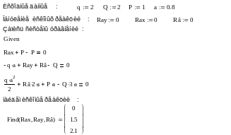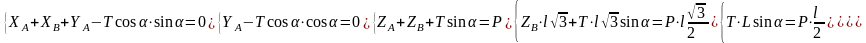 Компьютерное решение. Для решения системы линейных уравнений можно использовать, например, матричный метод. Уравнения равновесия (1), (2) и (3) запишем в стандартной форме, сохраняя неизвестные в левых частях уравнений: