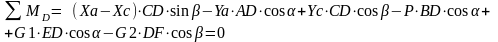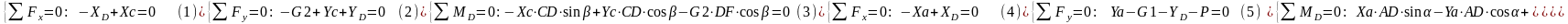 Для каждой расчетной схемы (рис.5) составляем 3 уравнения равновесия: два уравнения сил в проекциях на оси координат x и y, а также сумму моментов сил относительно т. D.