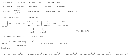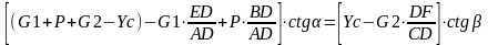 При подстановке числовых значений получим Yc=160 (H); Ya=150 (H); Xc=Xa=135 (H)