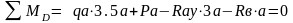 Проверка. Для проверки составим уравнение равновесия в форме суммы моментов сил относительно точки D (рис. 3) и убедимся, что оно обращается в тождество: