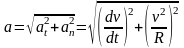 Формула для полного ускорения при криволинейном движении имеет вид:
