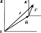 Как показывает опыт, нужным требованиям удовлетворяют системы отсчета, которые связаны с физическими объектами, не испытывающими внешних воздействий, т.е. не подвергающимися каким-либо ускорениям. В таких системах отсчета тела находятся в состоянии покоя или равномерного прямолинейного движения до тех пор, пока на них не действуют другие тела. Свойство тела сохранять такое состояние называется инерцией, и поэтому системы отсчета, о которых "идет речь, носят название инерциальных. Если наряду с выбранной инерциальной системой, рассмотреть другую, движущуюся относительно первой прямолинейно и равномерно, то свободное движение тела в новой системе будет также происходить с постоянной скоростью. Таким образом, существует бесконечное множество инерциальных систем отсчета. Во всех этих системах свойства пространства и времени одинаковы и одинаковы законы механики. Не существует никакой абсолютной системы отсчета, которую можно было бы предпочесть другим системам. В этом состоит принцип относительности Галилея. Его можно сформулировать и так: никакими механическими опытами невозможно установить, движется ли данная инерциальная система или покоится: оба состояния эквивалентны. Координаты точки в двух системах отсчета, одна из которых K' движется равномерно и прямолинейно относительно другой (K) со скоростью V, связаны соотношением (рис.)