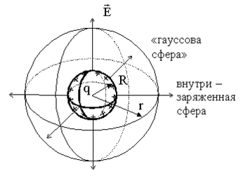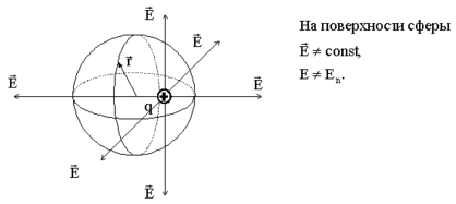 В любой точке сферы поле направлено перпендикулярно ее поверхности, т.е.