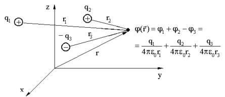 здесь мы полагаем, что на бесконечности потенциал φ равен нулю.