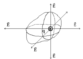 Пусть Е создается точечным зарядом q, тогда из (3.7)