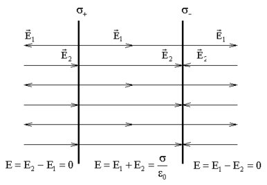 Поле плоского конденсатора было рассмотрено в разделе (4.4.2)