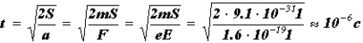Так, при Е = 1 В/м расстояние S = 1 м электрон пройдет в вакууме за