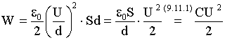 Энергия электрического поля плоского конденсатора, как следует из (12), равна