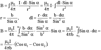Для бесконечного проводника α1 = 0, α2 = π, Сos α1 - Сos α2 = 2