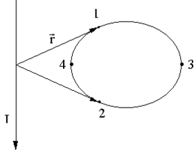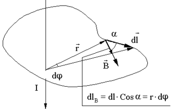 Циркуляция для плоского контура, охватывающего бесконечный прямой проводник с током