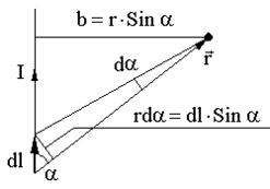Применение закона Био-Савара-Лапласа для нахождения магнитного поля прямого тока