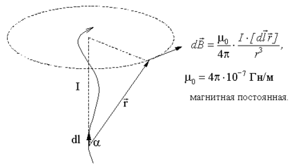 б) вектор В направлен по касательной к линии магнитной индукции;