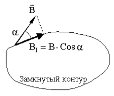 по некоторому (произвольному!) контуру равна алгебраической сумме токов, охватываемых контуром, умноженной на μ, т.е.